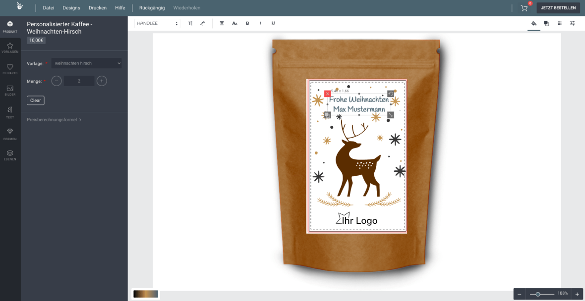 Die Herausforderung bestand darin, eine Plattform zu schaffen, die es ermöglicht Kaffee mit einem persönlichen Touch zu verbinden. Es sollte eine einfache, benutzerfreundliche Lösung gefunden werden, die es jedem ermöglicht, ohne grafische Kenntnisse individuelle Kaffee-Etiketten zu gestalten.